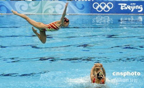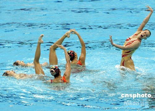 8月23日,北京奧運(yùn)會(huì)花樣游泳集體項(xiàng)目比賽結(jié)束,中國(guó)隊(duì)以總分97.334分獲得銅牌,實(shí)現(xiàn)了奧運(yùn)會(huì)在這個(gè)項(xiàng)目上的突破。俄羅斯隊(duì)?wèi){99.500分獲得金牌,西班牙隊(duì)以98.251分奪得銀牌。中新社發(fā) 杜洋 攝