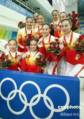 8月23日,中國花樣游泳隊在北京奧運會集體項目決賽中獲得銅牌。 中新社發(fā) 杜洋 攝