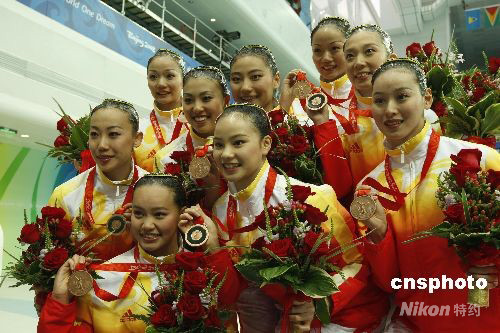 圖:中國花樣游泳隊在集體項目決賽中獲得銅牌