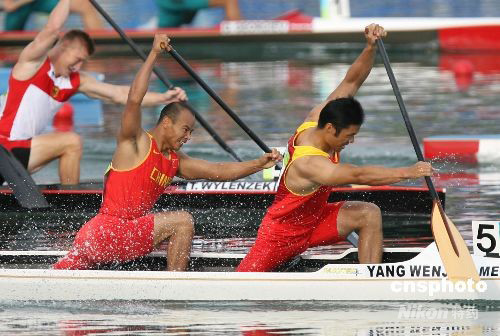 決賽中,他們被分在第五道,身旁分別是德國(guó)和俄羅斯組合。順利起航后,孟楊組合在前二百五十米一直占先。后半程,俄羅斯組合沖了上來(lái),一度對(duì)孟楊組合構(gòu)成威脅。