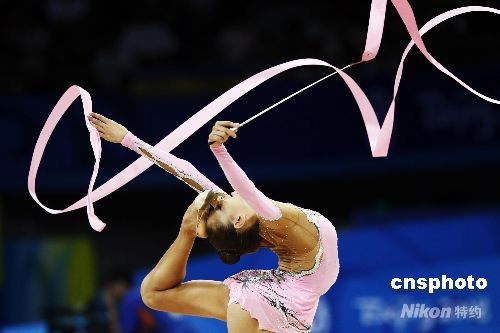 8月23日晚,在北京工業(yè)大學體育館舉行的北京奧運會藝術(shù)體操個人全能決賽中,俄羅斯選手葉夫根尼婭·卡納耶娃以出色的表現(xiàn)獲得冠軍。