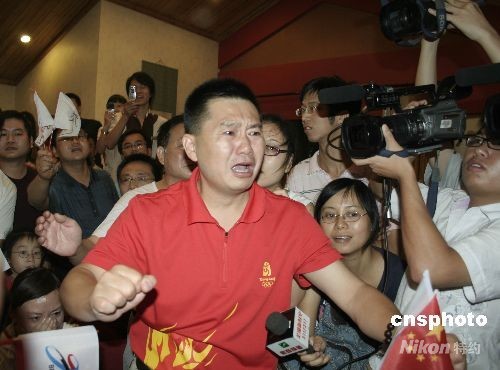 圖為當(dāng)周呂鑫痛失金牌后,叔叔周鋼流淚了。 中新社發(fā) 張婭子 攝