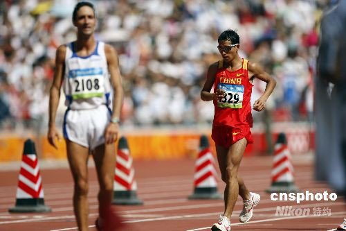 8月24日,北京奧運(yùn)會(huì)田徑比賽的最后一天,在男子馬拉松的比賽中,肯尼亞選手塞繆爾-卡馬烏以2小時(shí)06分32秒奪冠,并且打破了奧運(yùn)會(huì)紀(jì)錄。銀牌被摩洛哥選手賈瓦德-加里卜以2小時(shí)07分16秒奪得,同樣打破了奧運(yùn)會(huì)紀(jì)錄,第三名被埃塞俄比亞的策加耶-凱貝德-沃爾多法以2小時(shí)10分00秒獲得。中國(guó)選手鄧海洋和李柱宏以2小時(shí)16分17秒和2小時(shí)24分08秒分列第25位和51位。中新社發(fā) 盛佳鵬 攝