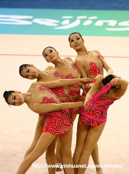 8月24日,在北京奧運(yùn)會(huì)藝術(shù)體操集體全能決賽中,中國隊(duì)獲得銀牌實(shí)現(xiàn)突破,這是中國隊(duì)獲得的最好成績(jī),以前最好戰(zhàn)績(jī)是亞特蘭大奧運(yùn)會(huì)的第五名。冠軍被俄羅斯隊(duì)奪得,白俄羅斯隊(duì)獲得銅牌。