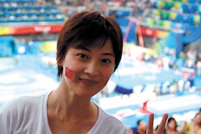 在北大體育館觀看中國(guó)女子乒乓團(tuán)體決賽的袁立,見證了中國(guó)奪取奧運(yùn)會(huì)歷史上首枚乒乓團(tuán)體金牌,不忘擺個(gè)POSE表示一下喜悅心情。