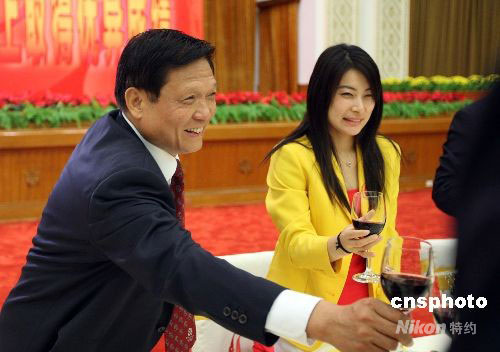 8月26日,2008年北京奧運(yùn)會(huì)中國(guó)體育代表團(tuán)總結(jié)大會(huì)在北京人民大會(huì)堂舉行。中共中央政治局委員、北京市委書記、北京奧組委主席劉淇向北京奧運(yùn)會(huì)中國(guó)體育代表團(tuán)敬酒致意。