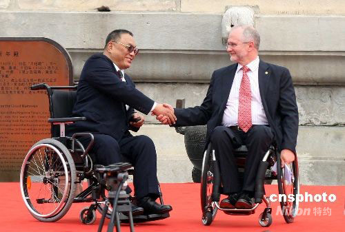 8月28日上午,北京殘奧會(huì)圣火采集暨火炬接力啟動(dòng)儀式在北京天壇舉行。國(guó)際殘奧委會(huì)主席菲利普·克雷文(右)與全國(guó)政協(xié)副主席、中國(guó)殘聯(lián)主席、北京奧組委執(zhí)行主席鄧樸方出席。中新社發(fā) 張宇 攝