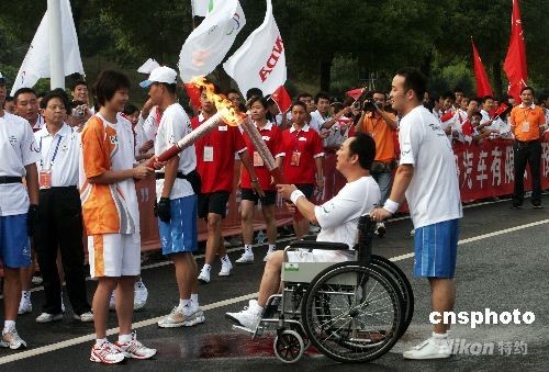 2008年8月31日上午,北京殘奧會圣火在武漢傳遞。中新社發(fā) 攝記 攝
