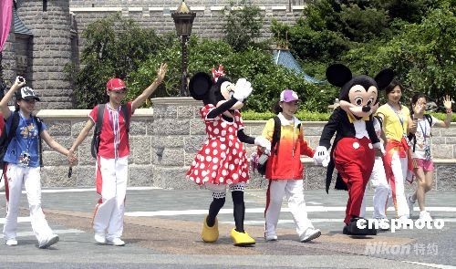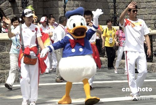 八月三十一日,正在香港訪問的奧運金牌運動員,分別到迪士尼樂園及海洋公園參觀游覽。圖為奧運金牌選手向熱情的香港市民揮手致意。中新社發(fā) 張勤 攝
