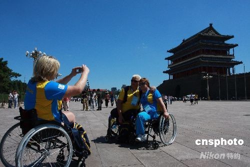8月31日,北京天安門廣場晴空萬里,一批外國殘奧會代表團成員樂游北京天安門廣場。中新社發(fā) 鄭雄增 攝