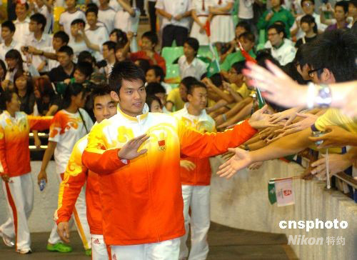 訪問澳門的奧運(yùn)金牌運(yùn)動(dòng)員代表九月一日出席多場(chǎng)活動(dòng),受到澳門民眾熱情歡迎。 中新社發(fā) 畢永光 攝