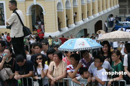 九月一日上午,北京奧運(yùn)內(nèi)地金牌運(yùn)動(dòng)員在澳門的第二日訪問行程,到名勝大三巴游覽,在牌坊前拍照合影。吸引大批市民一早到場等候,爭睹運(yùn)動(dòng)員的風(fēng)采。中新社發(fā) 洪少葵 攝