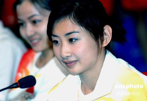 9月4日,剛剛載譽(yù)歸來的福建籍北京奧運(yùn)會舉重“金牌教練”陳文斌、北京奧運(yùn)會特設(shè)武術(shù)項(xiàng)目 “金牌教練”魏丹彤、北京奧運(yùn)會舉重冠軍張湘祥、蹦床冠軍何雯娜、北京奧運(yùn)會特設(shè)武術(shù)項(xiàng)目南拳冠軍林凡走進(jìn)福州大學(xué)與近二百名師生舉行座談互動(dòng)。圖為被譽(yù)為中國最美奧運(yùn)冠軍的何雯娜與大學(xué)生們親切交流。