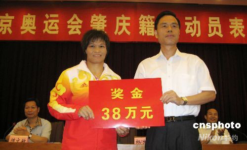 廣東肇慶重獎(jiǎng)奧運(yùn)健兒“媽媽冠軍”冼東妹