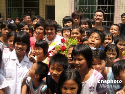 九月五日上午,“媽媽冠軍”冼東妹回到母校廣東四會市業(yè)余體校,鼓勵在校的師弟師妹要練好基本功,努力成才,從小樹立為國爭光為家鄉(xiāng)爭光的理想。一九七五年九月十五日,冼東妹出生在廣東四會逕口鎮(zhèn)新農(nóng)村的一個普通農(nóng)家。一九八八年,東妹進四會市業(yè)余體校先練習(xí)摔跤。中新社發(fā) 黃耀輝 攝