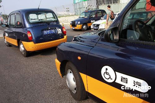 9月5日,北京一批無障礙出租車“蹲守”在殘奧村附件服務(wù)殘奧盛會(huì),成為北京一景吸引市民觀看。近日,首汽和北汽公司的70輛無障礙出租車組隊(duì)投入殘奧會(huì)的服務(wù)中,這些出租車司機(jī)均經(jīng)過相關(guān)培訓(xùn),幫助殘疾乘客時(shí),都將先詢問對(duì)方意見。這70輛無障礙出租車都是新購置的,包括“倫敦出租車”等4種車型。70輛出租車均配備了雙班司機(jī),這些車輛分批駐守殘奧村等地,保障殘奧大家庭成員的出行。中新社發(fā) 鄭雄增 攝