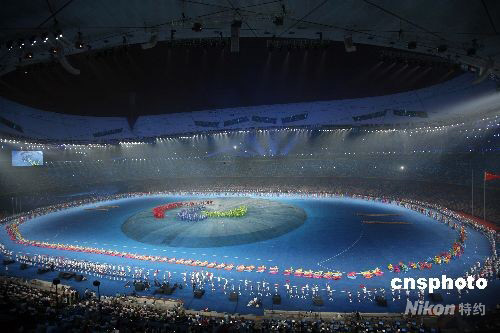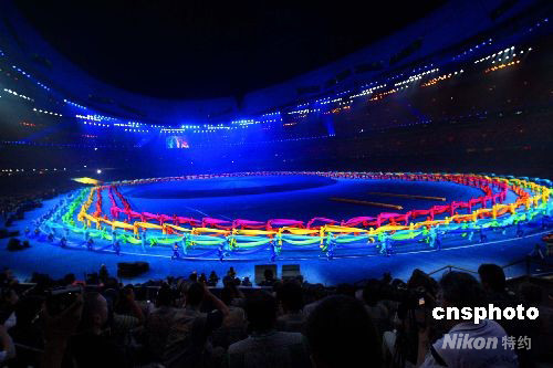 9月6日20時(shí),北京2008年殘奧會(huì)開(kāi)幕式在北京的國(guó)家體育場(chǎng)“鳥(niǎo)巢”舉行。 開(kāi)幕式表演多彩多姿。 中新社發(fā) 盛佳鵬 攝