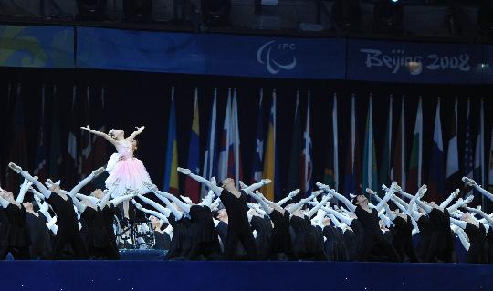 圖:殘奧會(huì)開幕式上災(zāi)區(qū)小女孩進(jìn)行文藝表演