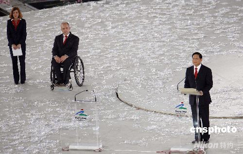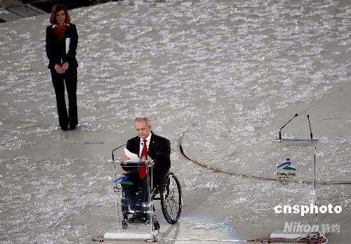 圖為克雷文在場地中心講臺致辭。中新社發(fā) 盛佳鵬 攝