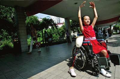 得知自己將參加北京殘奧會開幕式的演出后,李月連續(xù)排練了一個月,每天乘車兩個小時去往西藏中學(xué),一練就是好幾個小時,經(jīng)常深夜才回到病房,連臉上的妝都來不及洗就倒頭大睡。