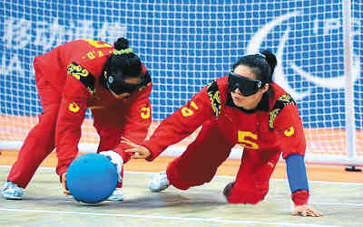 在殘奧會的第一個(gè)比賽日,中國女子盲人門球隊(duì)在首場比賽中以5∶3戰(zhàn)勝巴西隊(duì),迎來開門紅。許娟作為場上3名隊(duì)員之一,打滿了全場。比賽中,雖然她20次投球均未能攻破對方大門,但她成功地16次用身體擋住了對方的進(jìn)攻,為中國隊(duì)獲勝立下功勞。