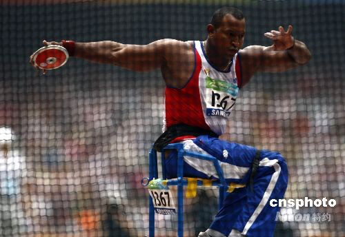 古巴選手萊昂那多-迪亞斯在男子鐵餅-F55/56決賽中獲得冠軍。