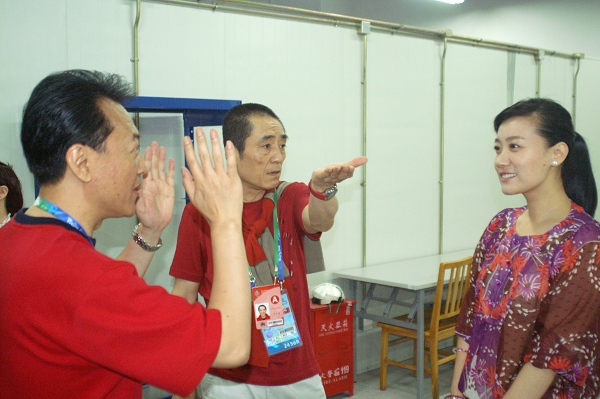 張藝謀總導演和張繼剛導演到后臺看譚晶