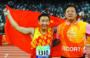 “這是我頭一次參加殘奧會,拿金牌、破紀錄,也算給我的教練一份驚喜吧,我想這是最好的教師節(jié)禮物,”雖然父母、親友都在看臺上助陣,朱鵬凱還是最想把這塊金牌獻給自己的教練韓松,“是教練發(fā)現了我,從2003年到現在,我一直跟著他練,5年多了他為我付出很多,可以說除了睡覺,我們倆幾乎一直綁在一起!敝禊i凱笑著說。