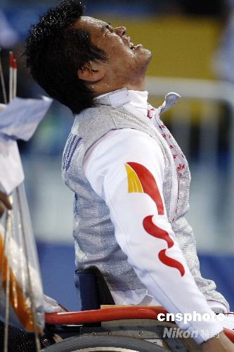 9月14日,北京殘奧會輪椅擊劍在北京國家會議中心擊劍館進(jìn)入首個比賽日,在男子個人花劍B級決賽中,10號種子中國選手胡道亮以15-8爆冷擊敗2號種子法國選手洛朗-弗朗索瓦,奪得金牌。