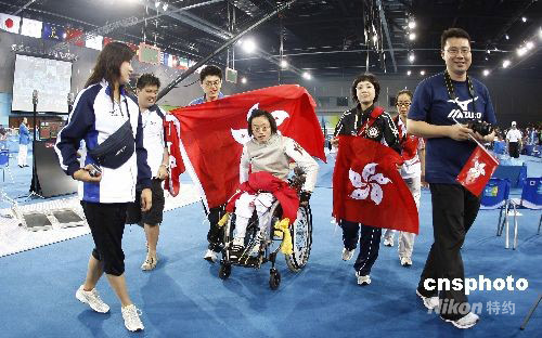 9月14日,北京殘奧會輪椅擊劍在北京國家會議中心擊劍館進(jìn)入首個比賽日,在女子個人花劍B級決賽中,頭號種子中國香港選手陳蕊莊以15-8戰(zhàn)勝9號種子中國選手姚芳,奪得金牌。 中新社發(fā) 盛佳鵬 攝