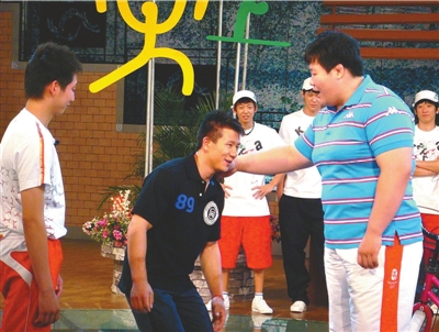 近日,在央視和中國(guó)文體明星助威團(tuán)《國(guó)慶七天樂,參與奧運(yùn)更快樂》拍攝現(xiàn)場(chǎng),奧運(yùn)會(huì)女子78公斤級(jí)柔道冠軍佟文騎著自行車來到了“奧林匹克花園社區(qū)”,剛從車上下來就看到同是奧運(yùn)會(huì)體操吊環(huán)冠軍的“老鄉(xiāng)”陳一冰隨便把垃圾一扔,看在眼里的佟文很是不滿,“怎么亂扔垃圾。 辟∥恼f著一個(gè)大巴掌把陳一冰給拍趴下了!還是主持人畢福劍考慮周到,把兩人叫到一邊說道:“咱們國(guó)慶要七天樂!”(李昊)