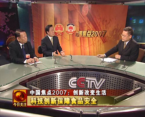 好,觀眾朋友,歡迎繼續(xù)收看我們的“兩會”特別報道:中國焦點2007年。今天,我們關(guān)注的是科技創(chuàng)新這個話題。今天演播室我們特別邀請到了兩位權(quán)威的嘉賓,我來介紹一下,一位是科技部副部長尚勇先生,你好,尚部長。