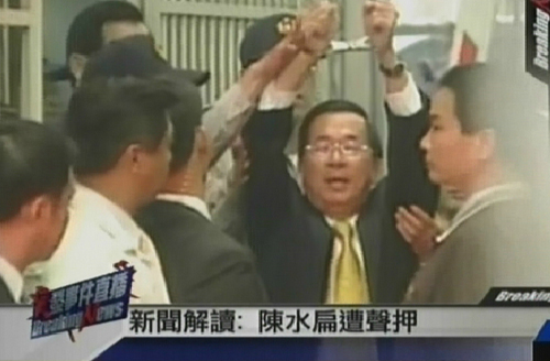 圖:陳水扁被聲請(qǐng)羈押 銬往法院出庭聽判