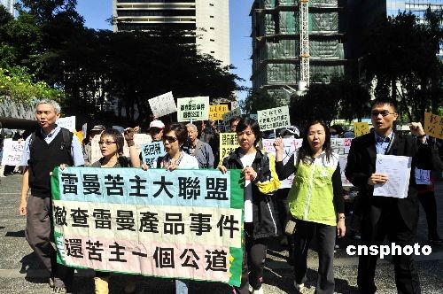 圖:雷曼苦主立法會(huì)門外表達(dá)訴求