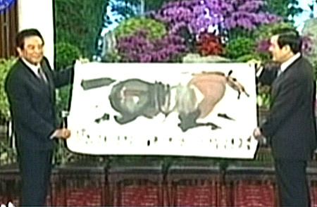 圖:連戰(zhàn)、陳云林互贈(zèng)禮物