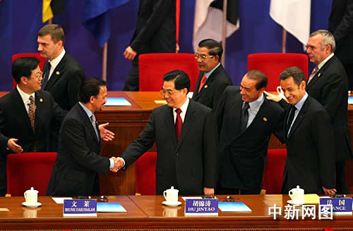 胡錦濤、溫家寶與出席亞歐首腦會(huì)議各國(guó)領(lǐng)導(dǎo)人合影