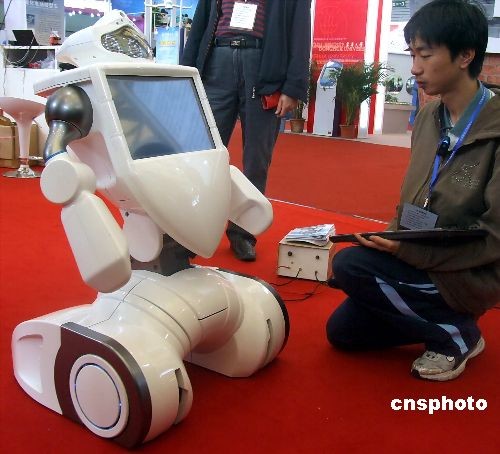 圖:復(fù)旦大學(xué)展示研發(fā)的機(jī)器人“復(fù)娃”
