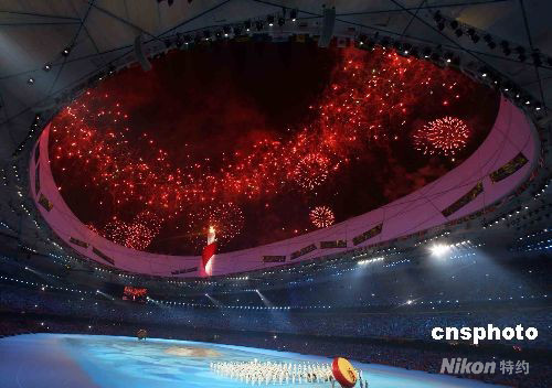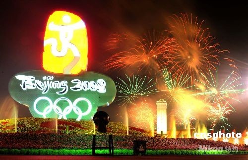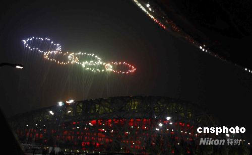 圖:奧運閉幕式“鳥巢”上空呈現(xiàn)煙花倒計時