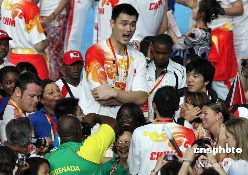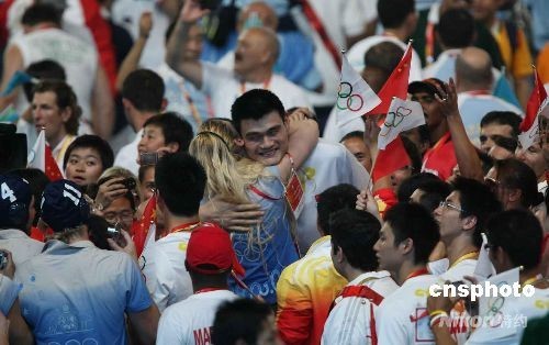 圖:奧運會閉幕式姚明友好擁抱金發(fā)美女
