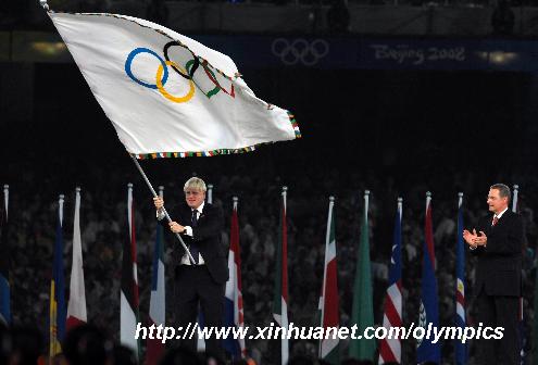 圖:奧運會閉幕奧林匹克會旗降下鳥巢