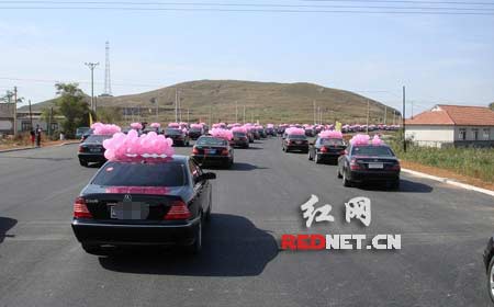 悍馬領隊百輛奔馳 看"史上最牛"婚車隊伍