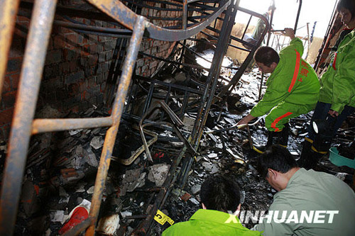 圖:上海商學院宿舍樓火災現(xiàn)場