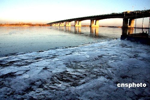 圖:松花江面開(kāi)始漂浮大量薄冰排