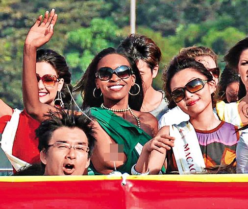 國(guó)際小姐游香港遇大風(fēng) 贊比亞佳麗不慎露點(diǎn)(圖)