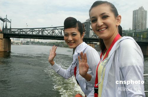 圖:最佳模特大賽中國區(qū)選手暢游海河