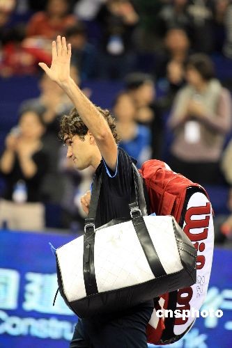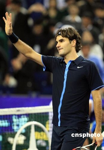 圖:費德勒戰(zhàn)勝對手迎來上海大師杯首勝