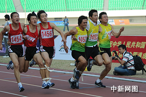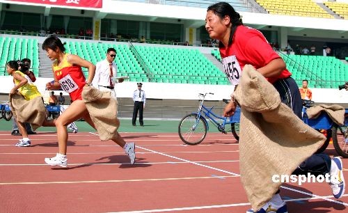 圖:農(nóng)運會60米三人四腳比賽趣味多