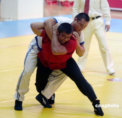 圖:農(nóng)運會摔跤賽場激戰(zhàn)正酣