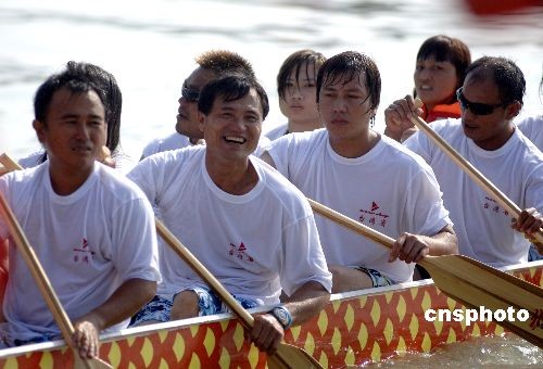 圖:來自臺灣的龍舟隊歡樂參賽農(nóng)運會
