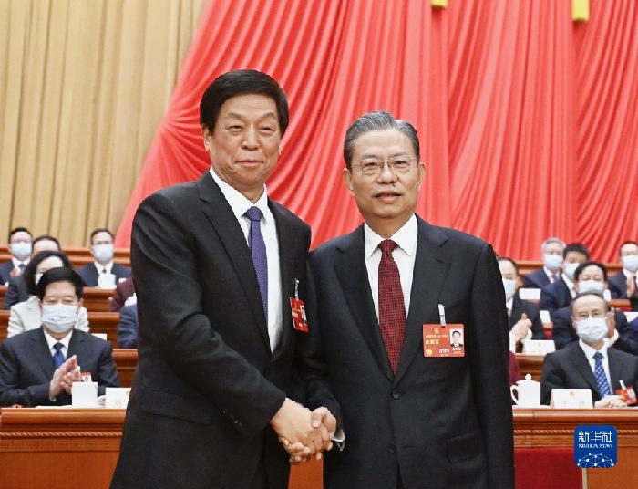 趙樂(lè)際同栗戰(zhàn)書(shū)握手